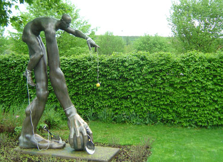 BAHLINGEN (ap). So zuverlässig alle Jahre der 1. Mai kommt, so zuverlässig wird inzwischen an diesem Tag auch eine „Bahlinger Kunstausstellung“ eröffnet. Auf das Dorf verteilt sieht der überraschte Passant schon früh am Morgen an zentralen Stellen wie Friedensplatz, Ochsenplatz, Bahnhof oder Haltestelle Riedlen Gemälde, Skulpturen und Installationen. Am diesjährigen 1. Mai waren es acht, wobei das am Kaiserstuhlstadion wohl schon früh am Tag beschädigt wurde.