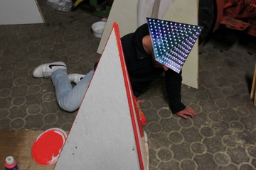 Ausschnitte aus dem Mäuse-Labyrinth erinnern an die Interaktivitäts-Ausstellung von 2004. - Glow in the Dark 1 | Haltestelle Riedlen