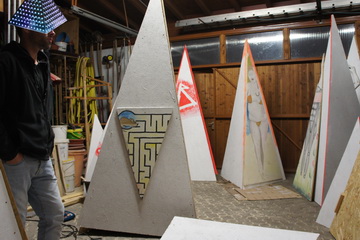 Unser vorläufig einmaliges Comeback feierten wir mit 10 bis zu 2,5 Meter hohen Pyramiden, die unter dem Motto „Zurück zur Kunst“ an die vergangenen sechs Ausstellungen der Jahre 1999 bis 2005 anknüpfen.